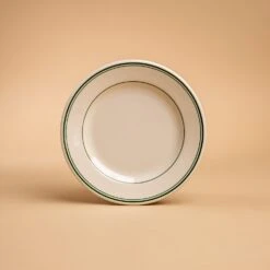 Take a step back in time to the classic nostalgic diners of the 1950s, and that’s where you’ll find this adorable Green Band collection. With three forest green bands around the rim of the ivory dinnerware, Green Band will have you smiling during breakfast, lunch, and dinner. Made in the U.S.A. by the same company that’s been bringing these classic, quality pieces to diners and homes for over 150 years!