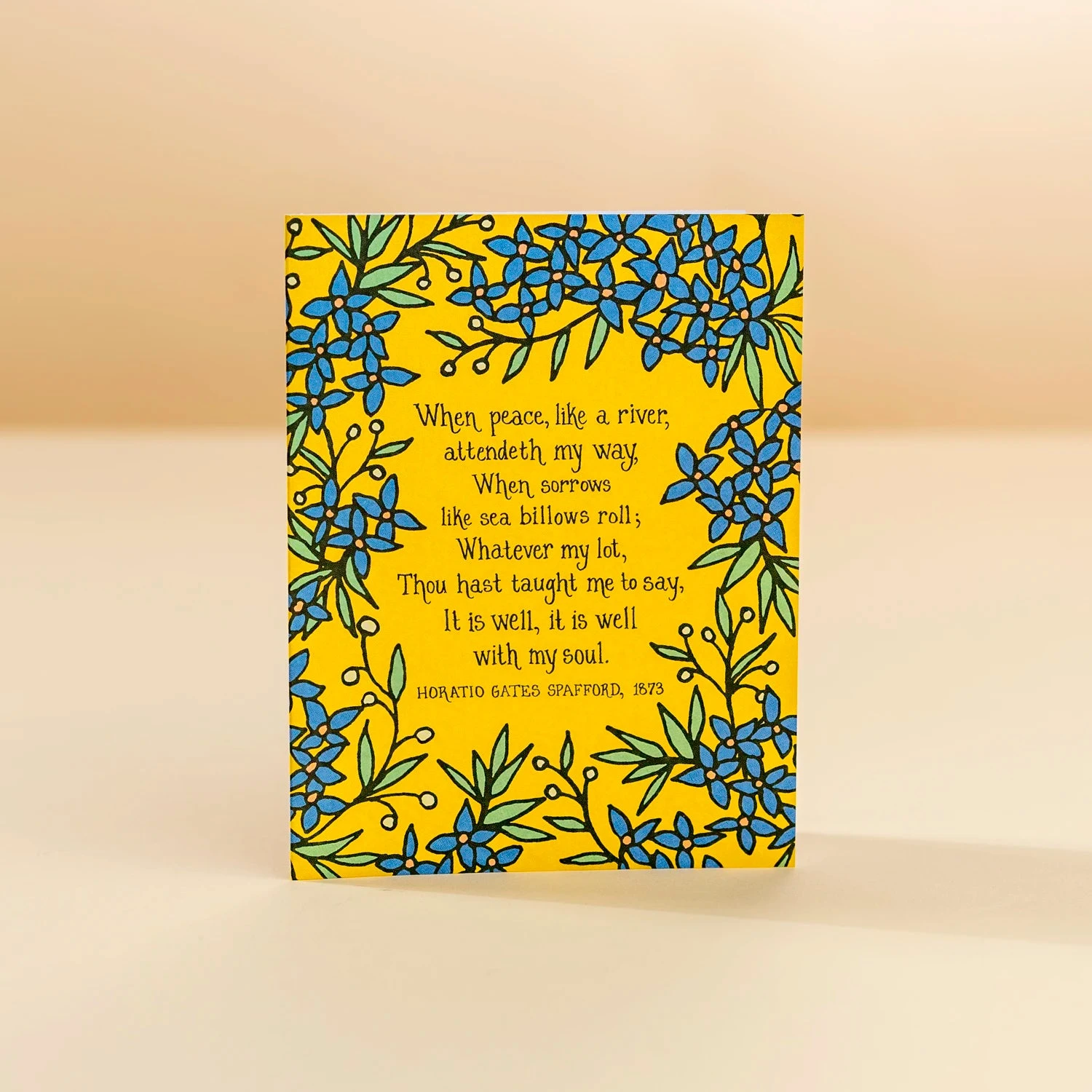 Share a message of enduring peace and faith with this beautiful hymn greeting card. Featuring the timeless lyrics of ‘It Is Well With My Soul,’ this card is designed to help you connect deeply with loved ones during moments of reflection, encouragement, or celebration. The elegant floral border and vibrant colors provide a thoughtful backdrop for your personal sentiments.