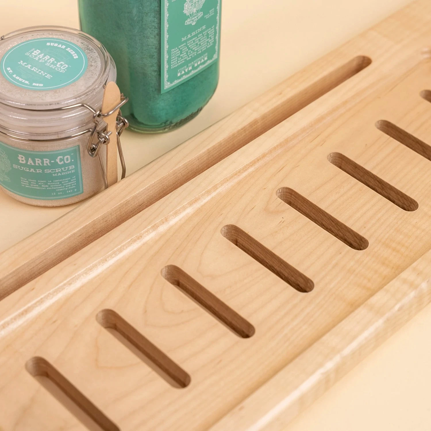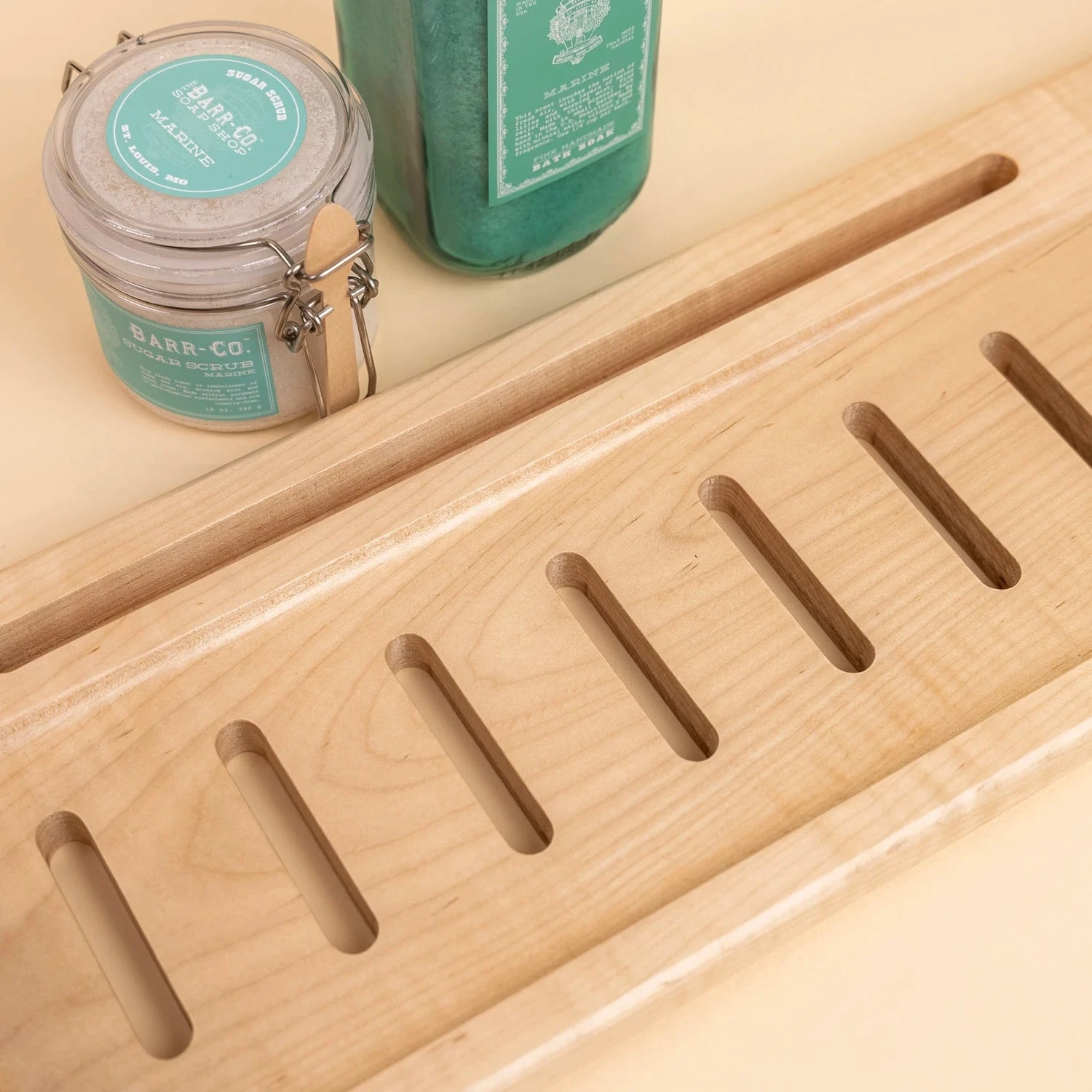 Transform your daily soak into a professional-grade spa experience with this handcrafted bathtub organizer. Designed to eliminate the clutter of wet towels and precariously balanced electronics, this maple wood caddy provides a secure, stable platform for your luxury essentials, allowing you to fully immerse yourself in relaxation without worry.