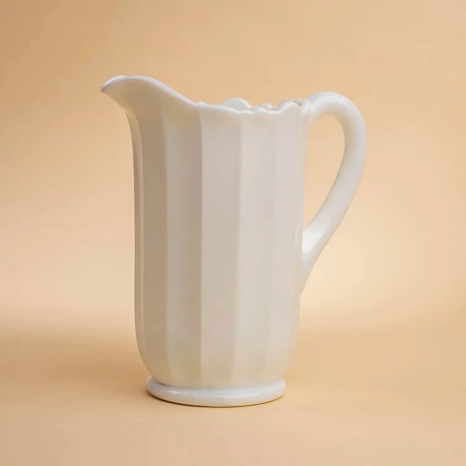 A little smaller than our Addison Glass Pitcher, the Panel Glass Pitcher full of OJ is a classic accessory to your breakfast table.